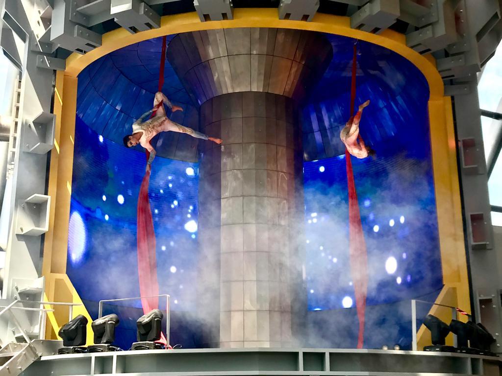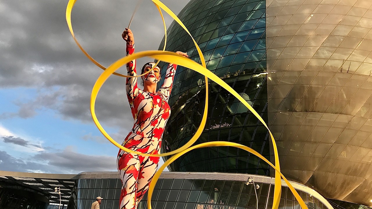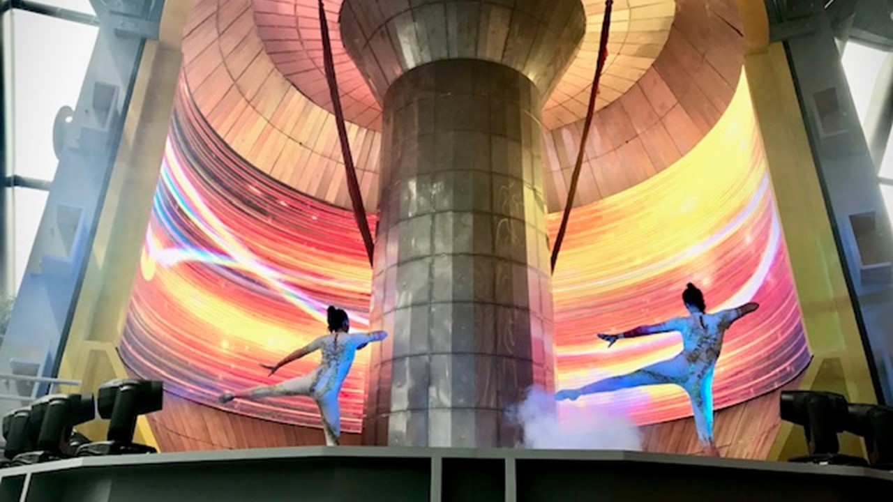 principal “Astana Sphere Tokamak” interpretado por bailarines Kazajomodernistas. El espectáculo simulaba a un reactor nuclear que funcionaria